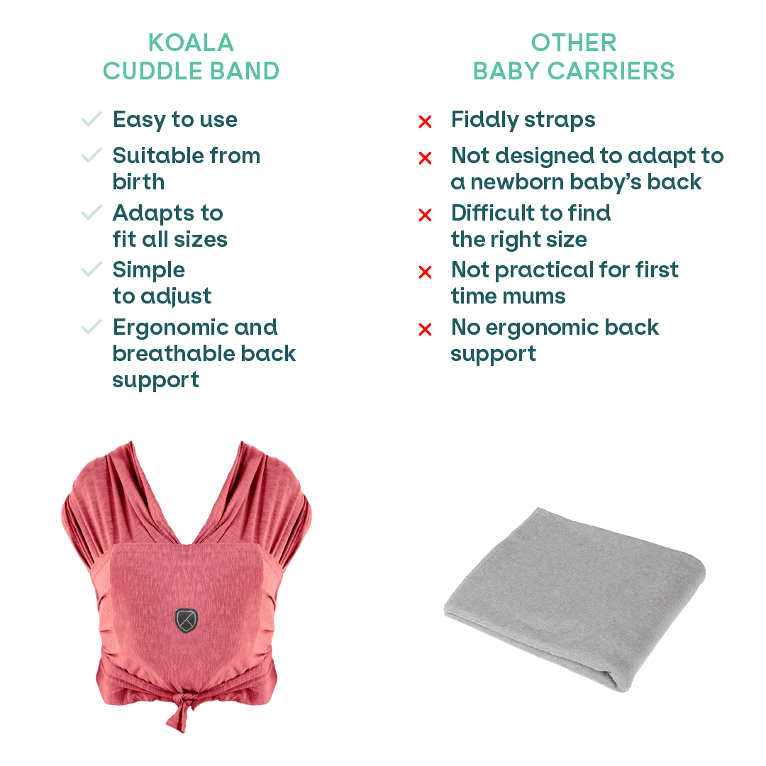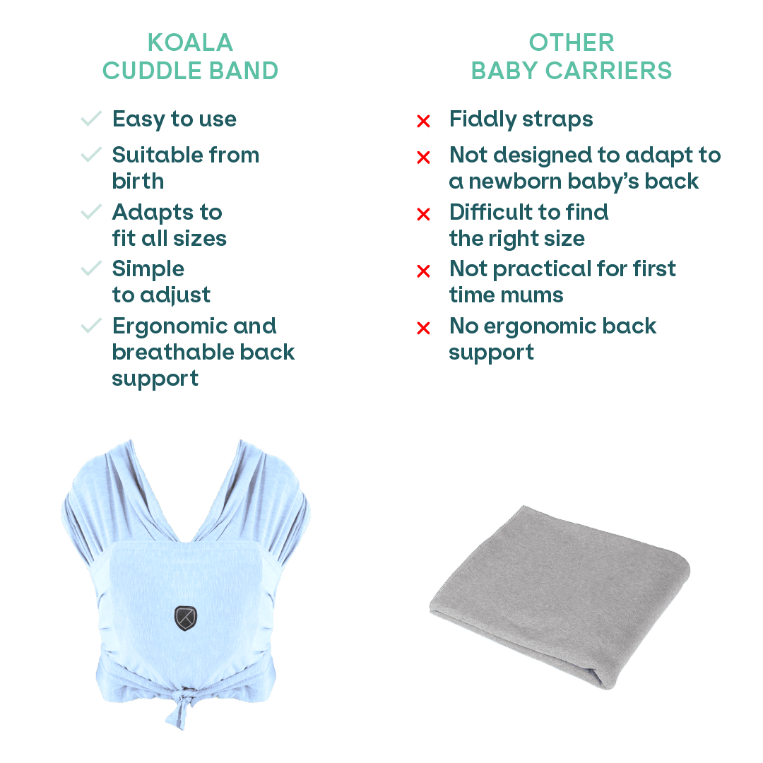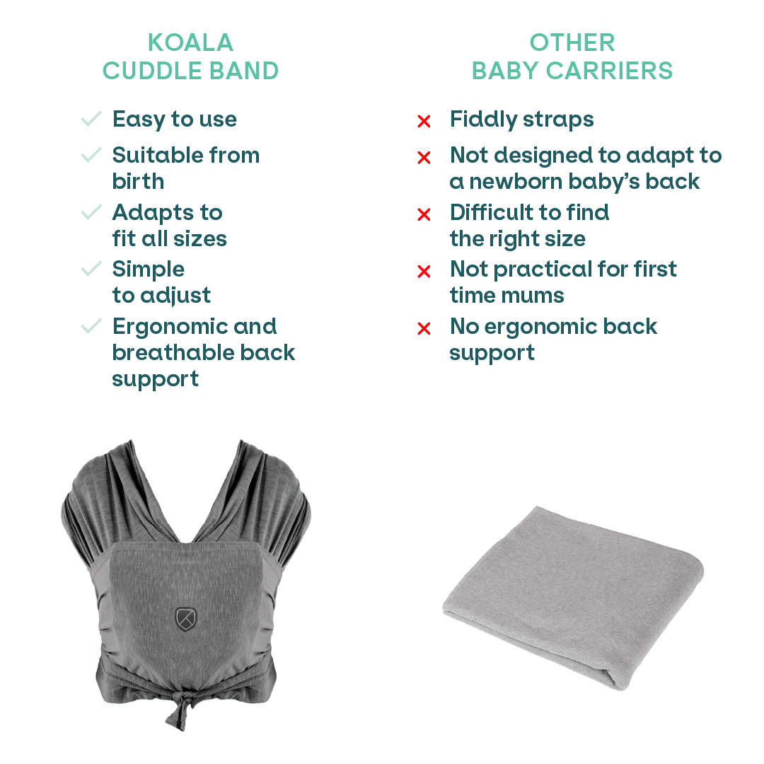 Koala Cuddle Band is a baby carrier that slips on as easily as a T-shirt. In just a few simple steps, your baby will be happy and safe. You’ll be hands-free and, at the same time, be snuggled up closely to your baby.
