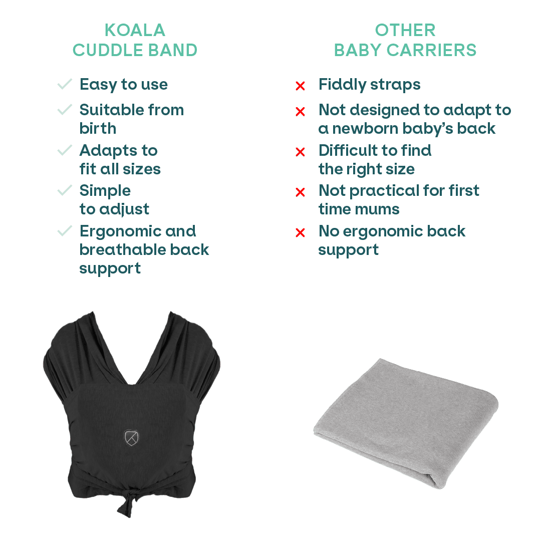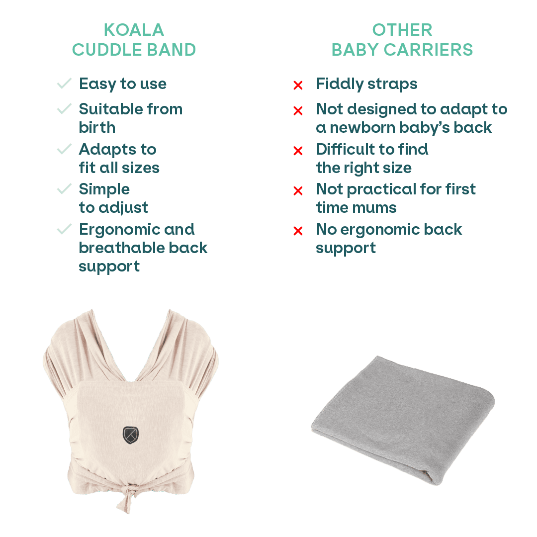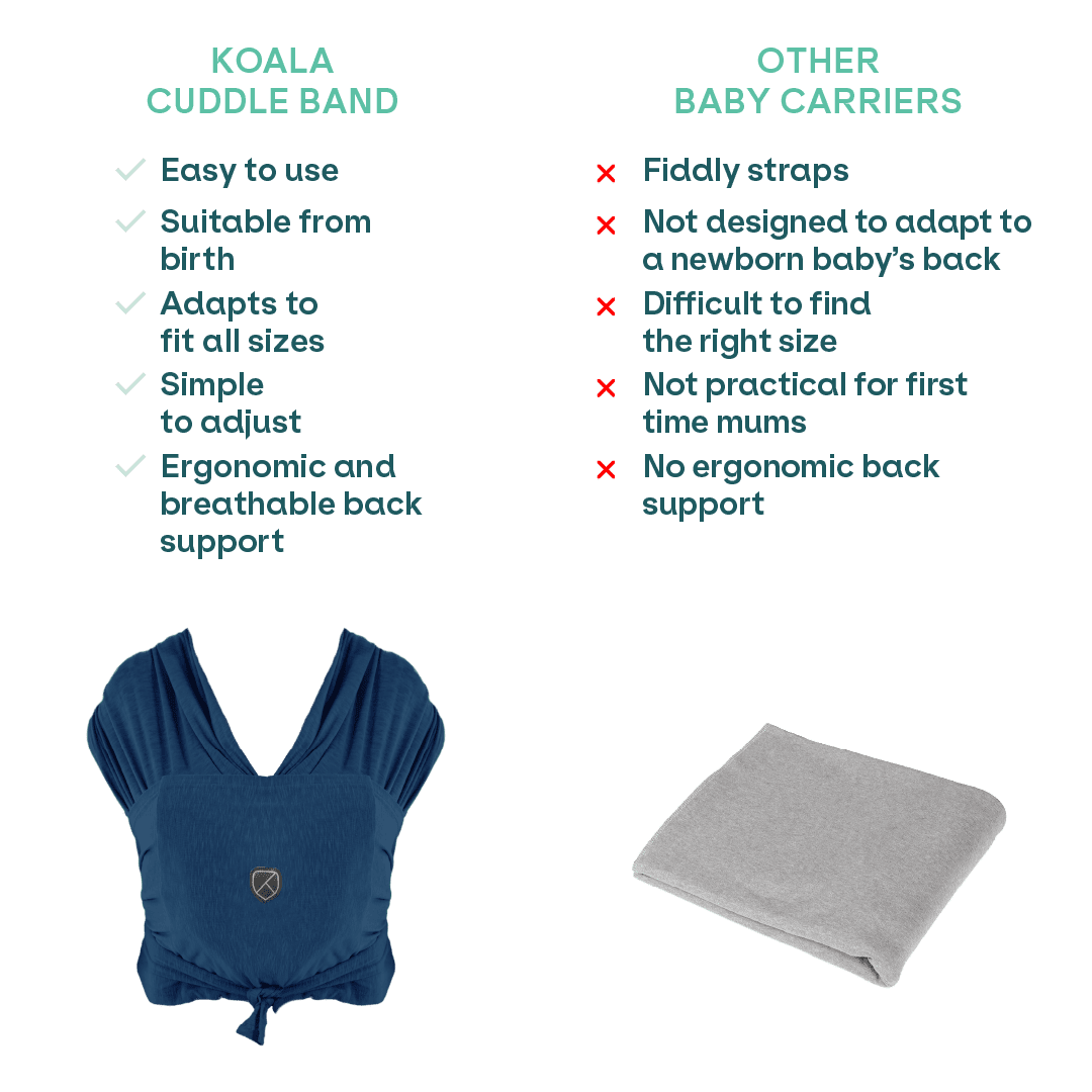 Koala Cuddle Band is a baby carrier that slips on as easily as a T-shirt. In just a few simple steps, your baby will be happy and safe. You’ll be hands-free and, at the same time, be snuggled up closely to your baby.