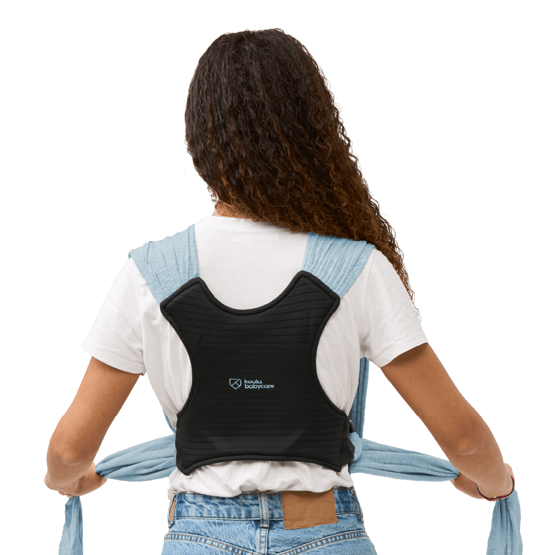 The ergonomic back support prevents back pain by distributing the baby's weight evenly.