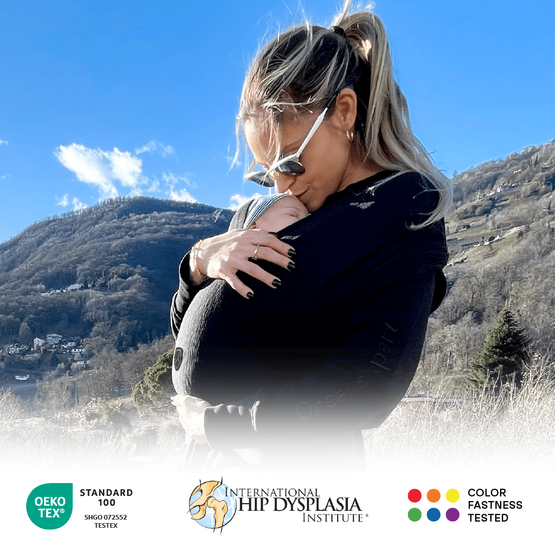 Koala Cuddle Band sling for babies also helps promote correct motor development of a baby’s hips and back.